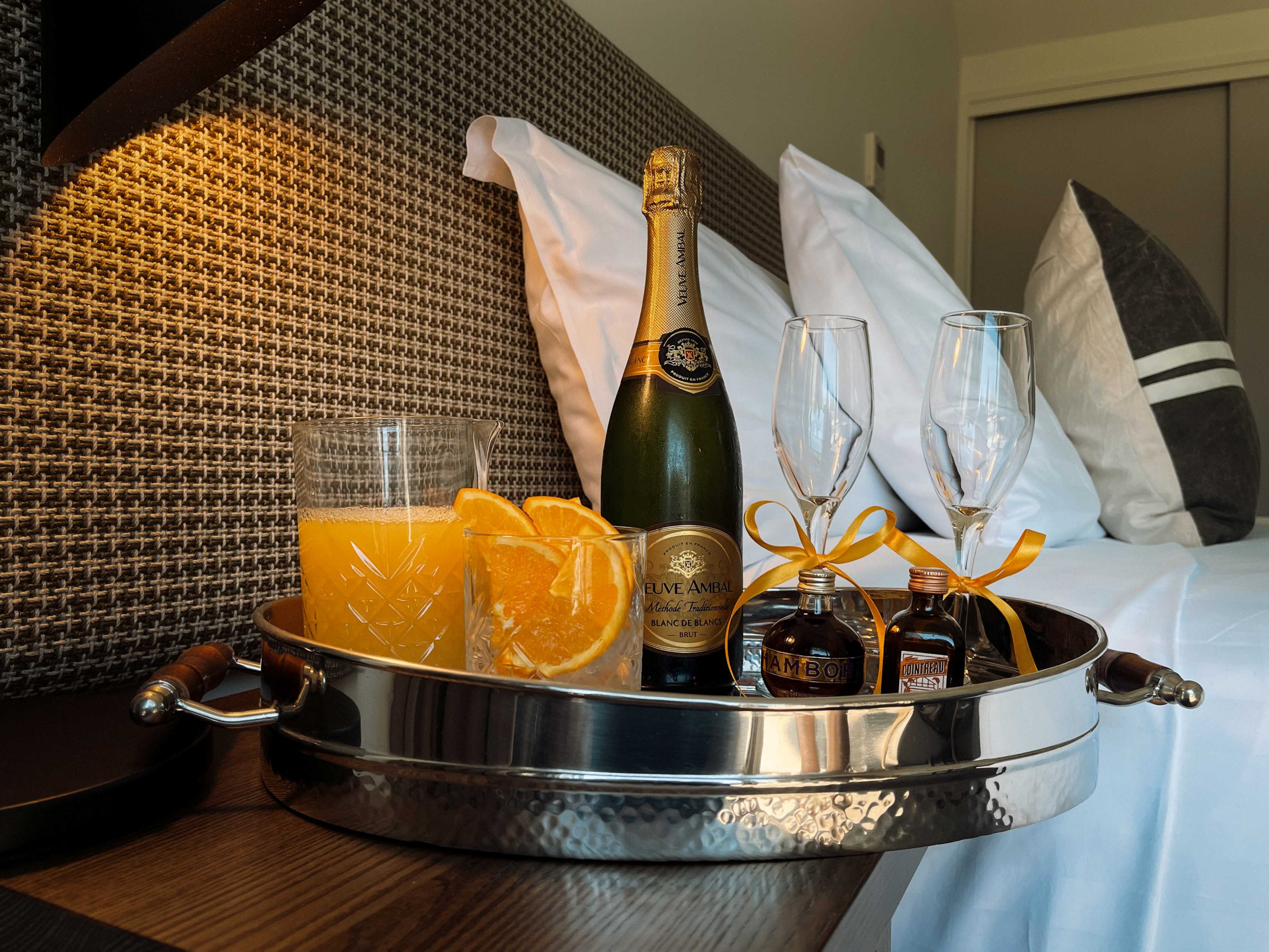 A curated in-room cocktail experience featuring bubbles, juices, and liqueurs to craft classic cocktails.